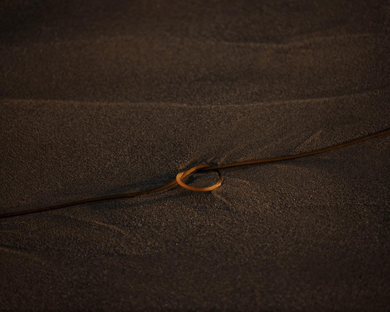 Digital photographic print of twisted kelp on sand at a beach in Northern California